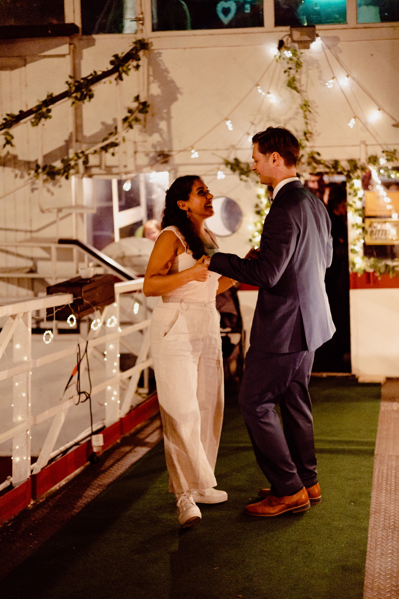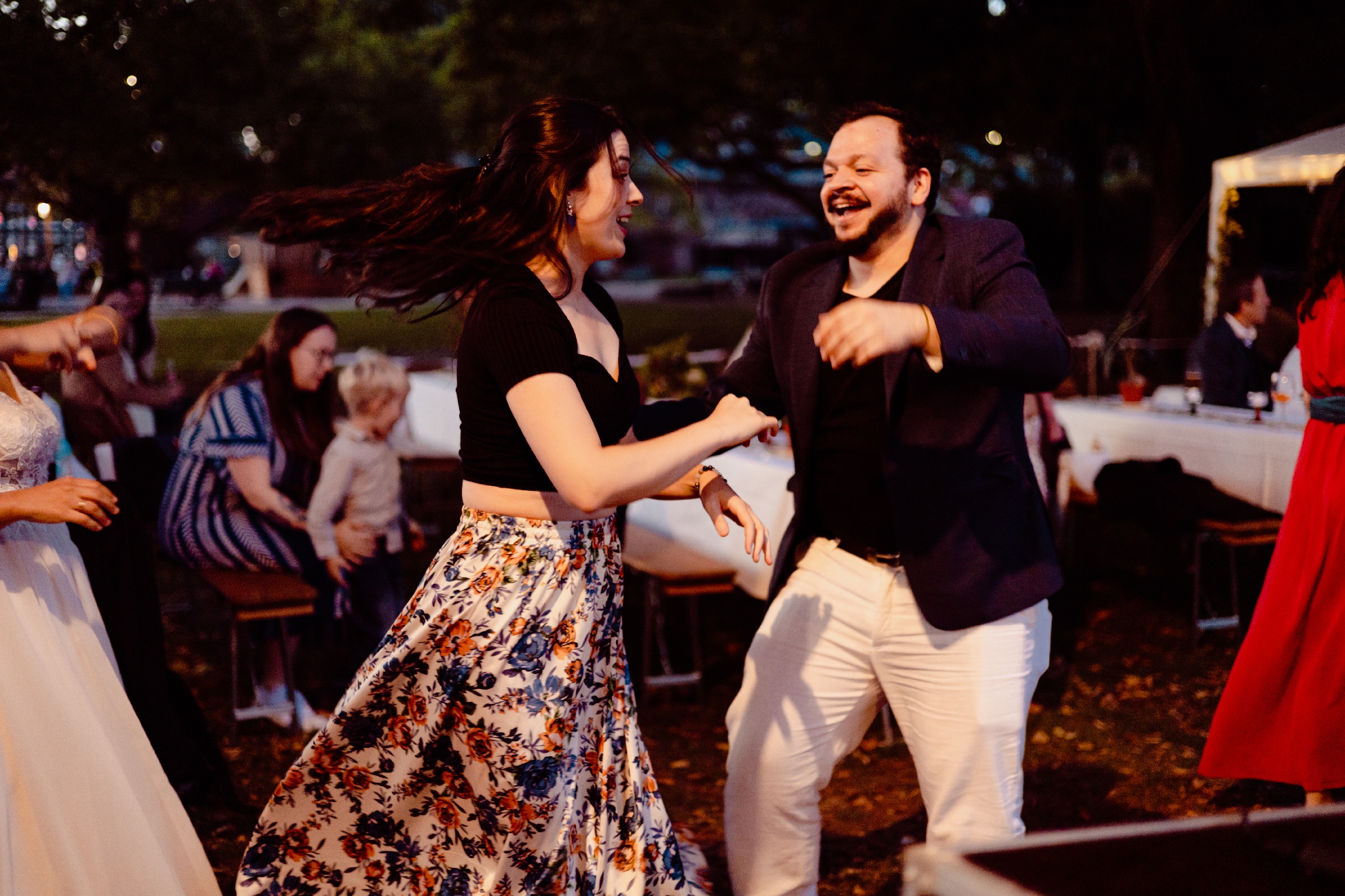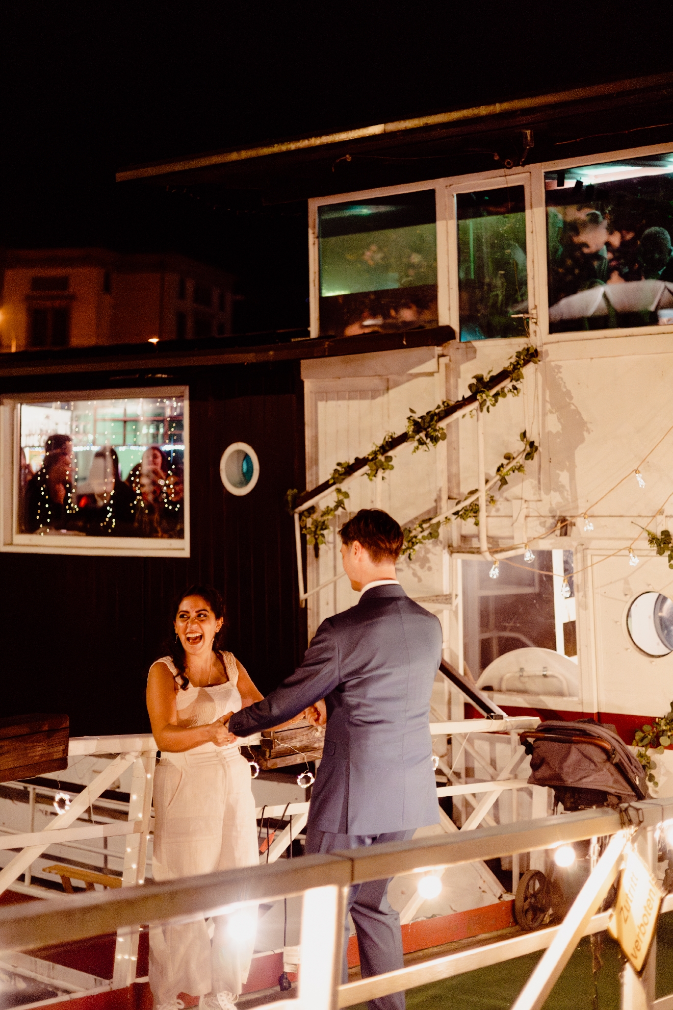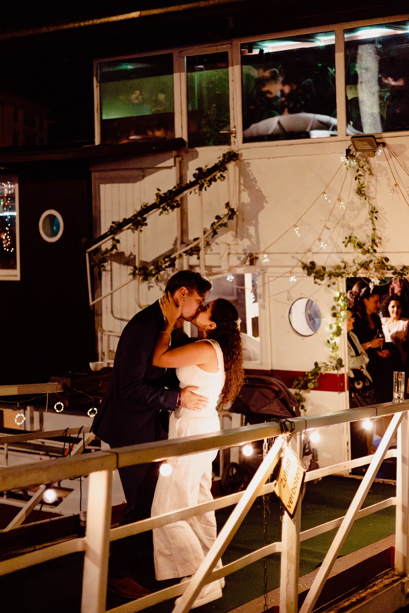 Mari & Luis haben ihren Tag mit viel südamerikanischem Temperament gefeiert – zahlreiche Gäste reisten extra aus Chile an. Nach der Trauung im Kulturhaus St. Ingbert und einem Umtrunk im Garten ging es am späten Nachmittag weiter auf der Saarbrücker Wiese und dem Feierey-Schiff. Über 100 Gäste, lateinamerikanische Klänge, ein lustiges Blitz-Gruppenshooting und ganz viel Feuer beim Tanzen – eine Feier voller Lebensfreude!